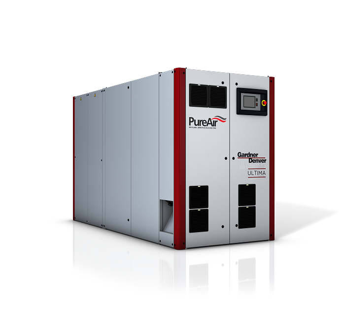 Ultima is a groundbreaking oil-free PureAir compressor. The unique design of this all-new compressor range from Gardner Denver utilizes both a low pressure and a high pressure dry screw airend—each airend individually driven by a variable speed, permanent magnet synchronous motor. This configuration offers exceptional efficiency compared to traditional oil-free technology.